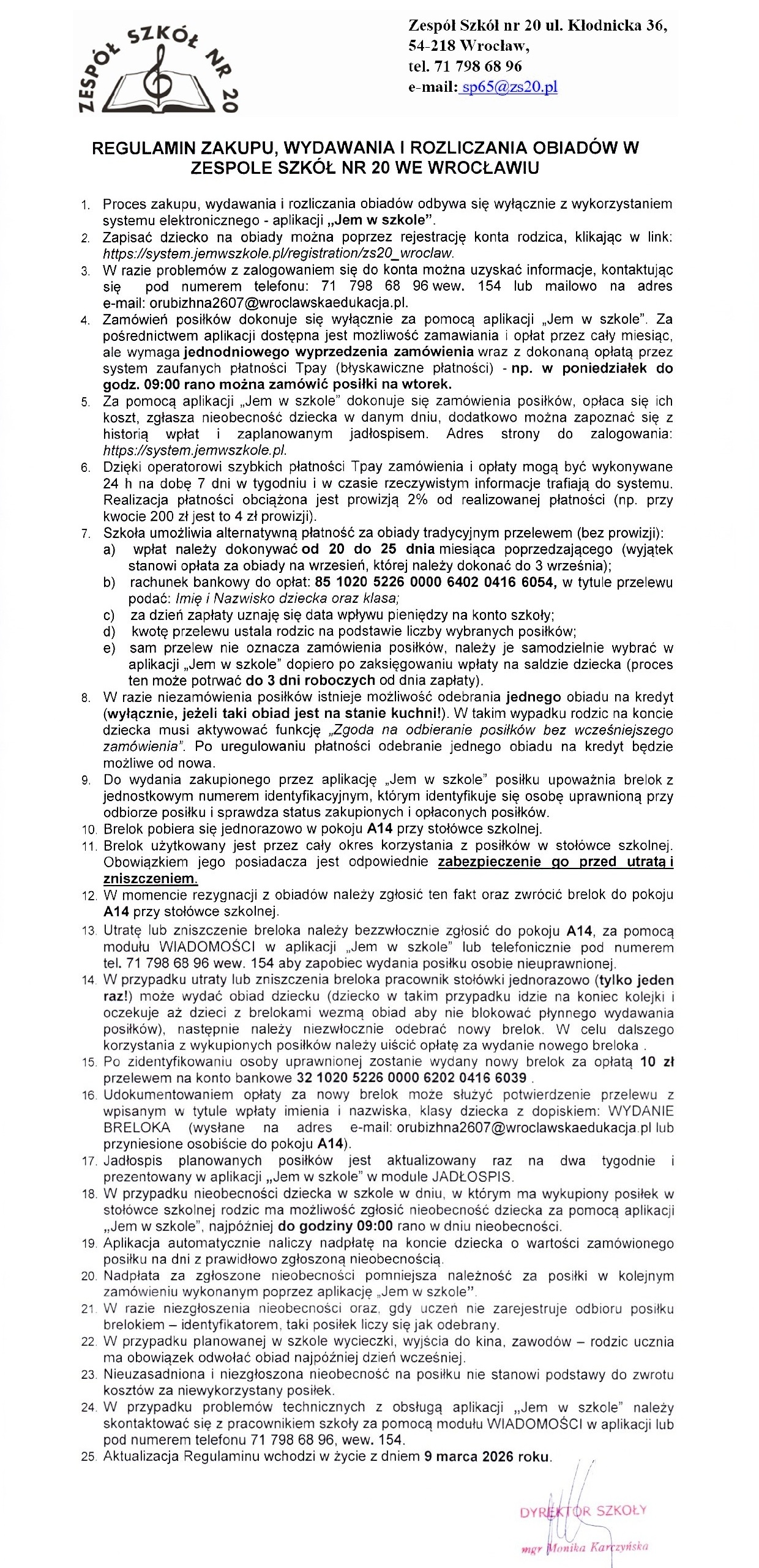 Regulamin zakupu, wydawania i rozliczania obiadów