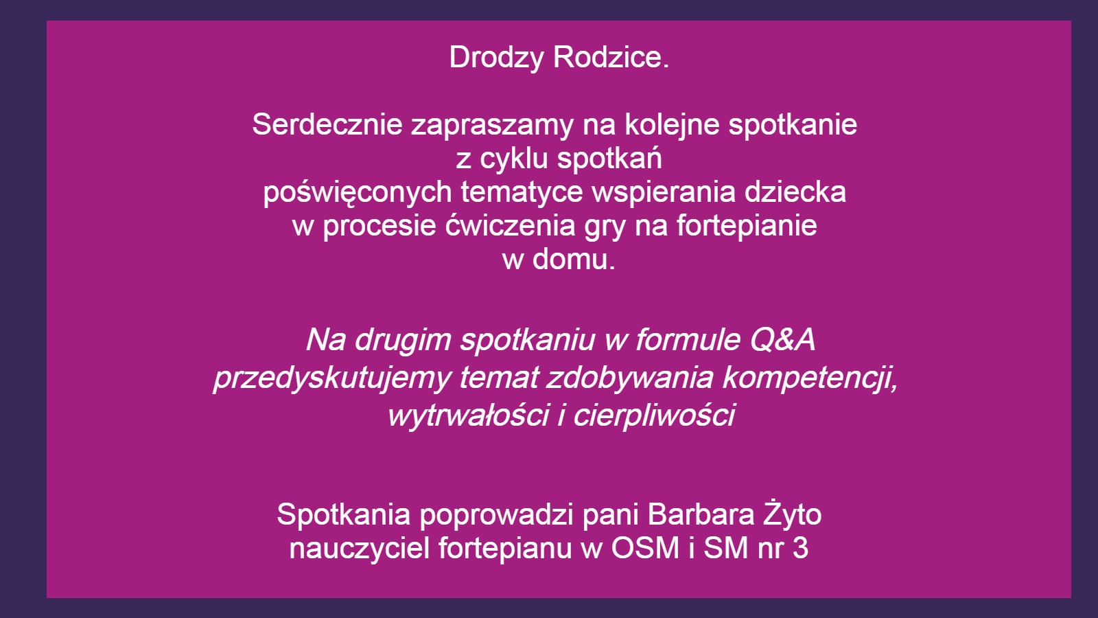Sekcja Fortepianu Zaprasza na spotkanie z cyklu"Dzielmy sie doświadczeniem"