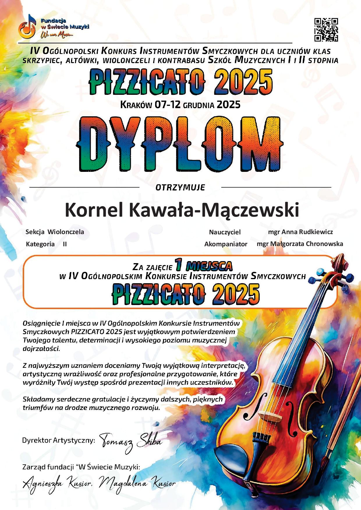 I miejsce 🥇(kategoria II) Kornel Kawała-Mączewski kl.4 OSM