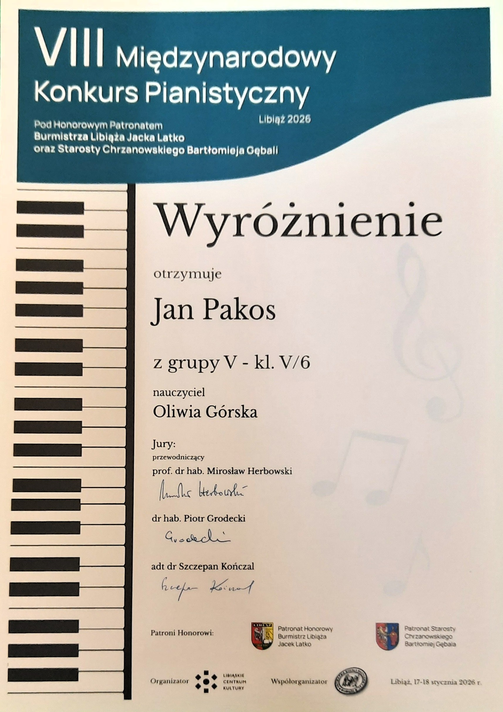 wyróżnienie 🏅 Jan Pakos - Wyróżnienie w gr. 5