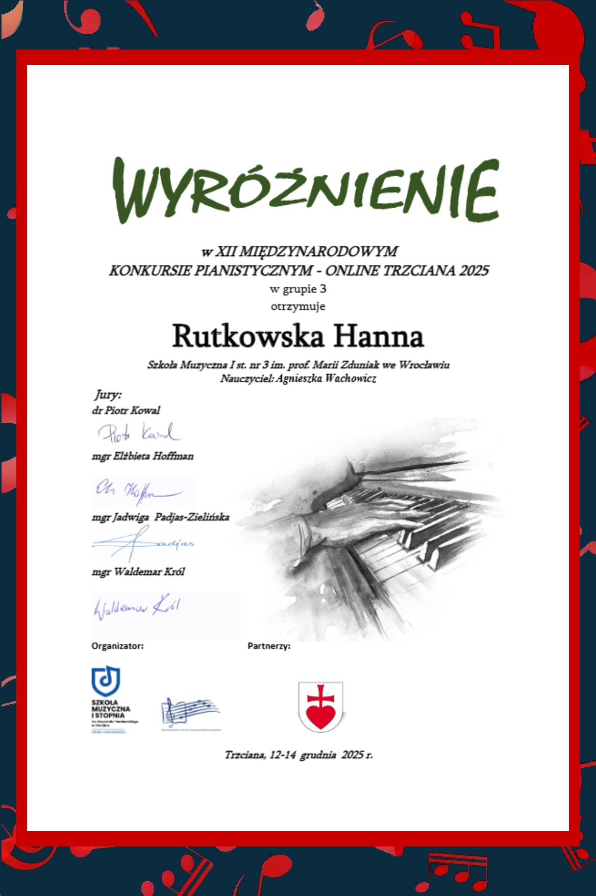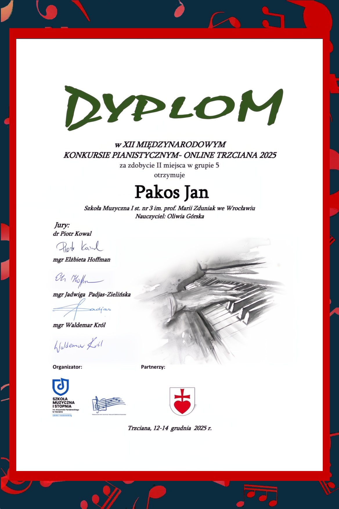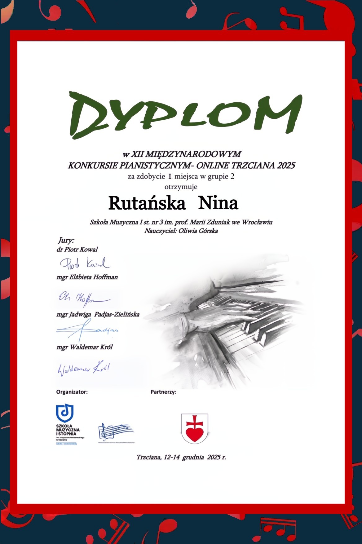 XII Międzynarodowy Konkurs Pianistyczny - Online Trzciana 2025