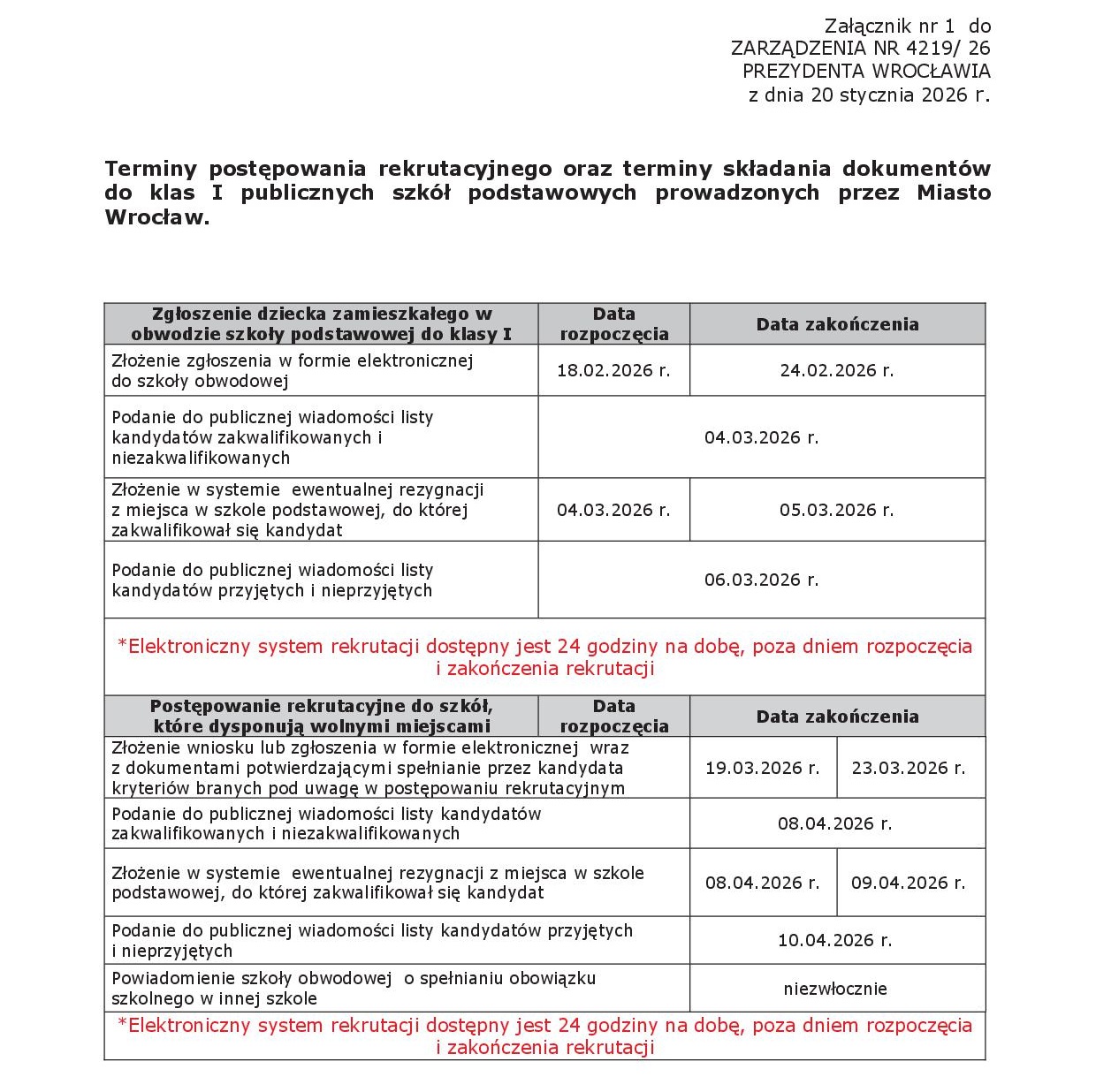Szczegółowy harmonogram i terminy rekrutacji do klas I w roku szkolnym 2026/2027 opublikowane są na stronie internetowej https://rekrutacje.edu.wroclaw.pl/elemento-public/
